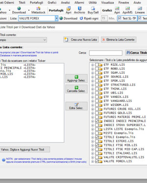 Aggiunta di nuove Liste Titoli Yahoo preformate per il Download di ETF (di tutti i principali emittenti), materie prime, Titoli, Valute, ecc.